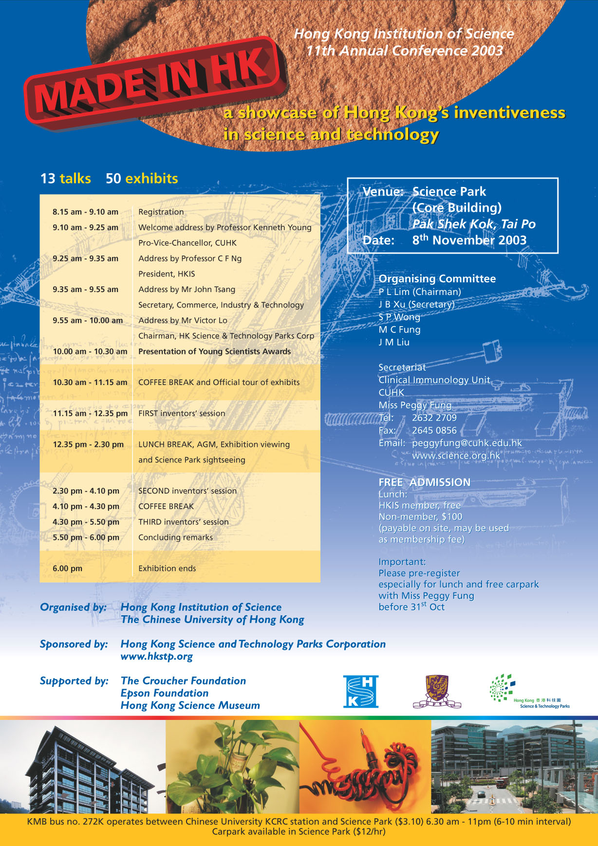 | Ms. Peggy Fung, Clinical Immunology Unit, The Chinese University of Hong Kong Tel: 2632 2709 Fax: 2645 0856 Email: peggyfung@cuhk.edu.hk |